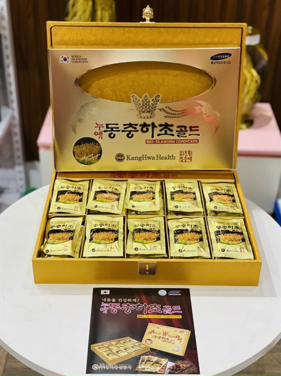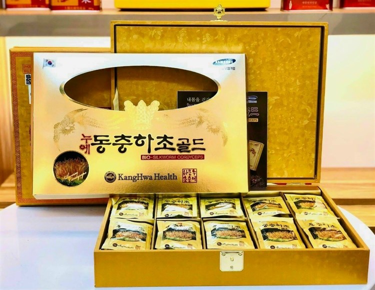 Thực phẩm đông trùng hạ thảo hàn quốc được đóng gói cẩn thận, dạng gói tiện dụng.
