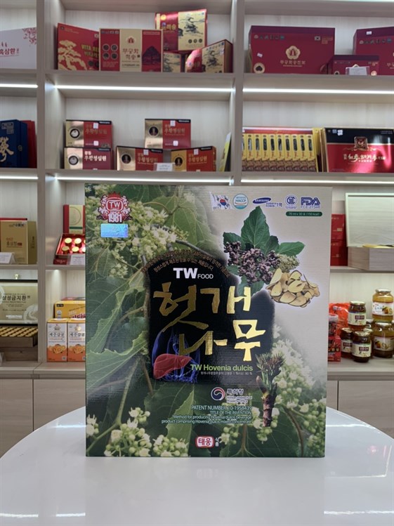 Thành phần: 50% hovenia dulcis thunberg. 10% táo đỏ hàn quốc , 10% câu kỳ tử. 10% Clycyrrhizae Radix, 10% Schizandra, 10% Cinnamon.