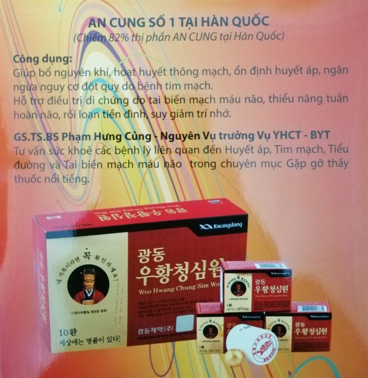Vũ hoàng thanh tâm là một thương hiệu của an cung Hàn QuốcVũ Hoàng Thanh Tâm được sản xuất bởi công ty Kwang DongQuy trình sản xuất viên Vũ Hoàng Thanh Tâm Hàn Quốc